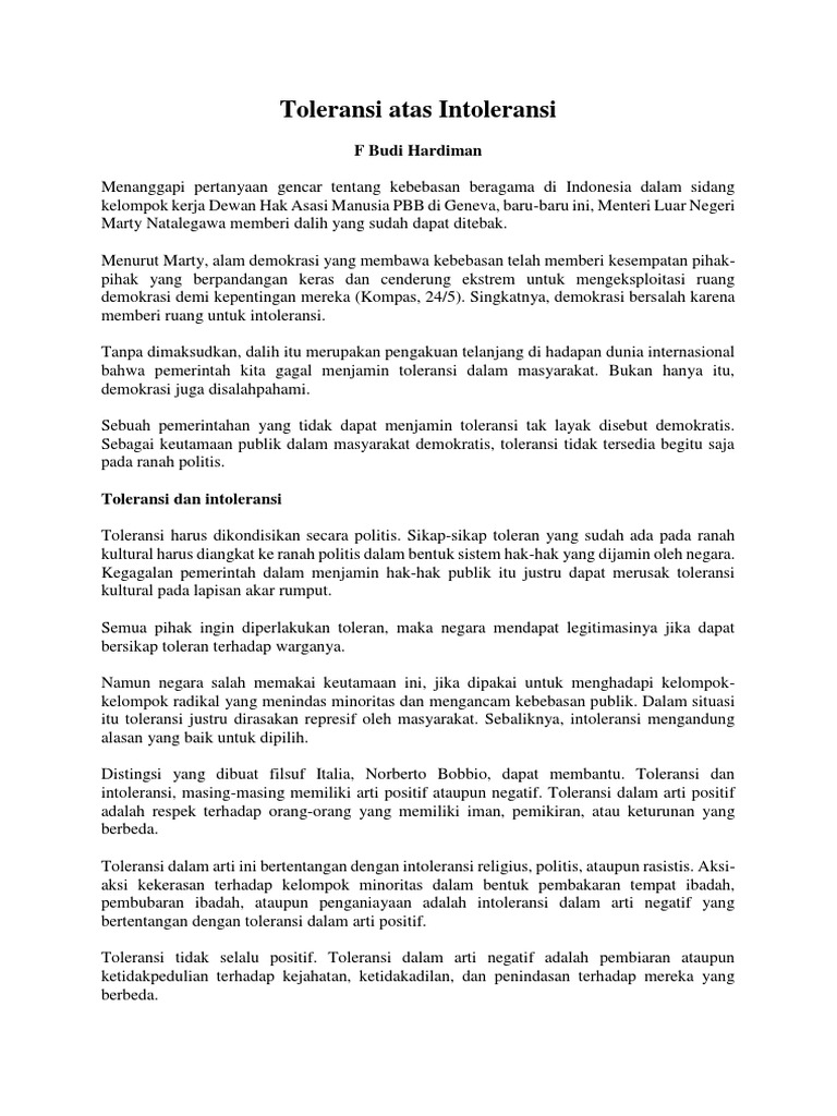 For more information and source, see on this link : Arti penting toleransi di indonesia duta damai sumatera barat. Toleransi dalam buddhisme majalah hikmahbudhi. Perlu ada toleransi jika berlainan bangsa, agama dan budaya, katanya ketika berucap pada majlis rumah terbuka malaysia tahun baharu cina 2019 di dataran centrio, seremban 2, di sini, hari ini. Toleransi penting untuk diterapkan karena kondisi indonesia yang begitu heterogen.